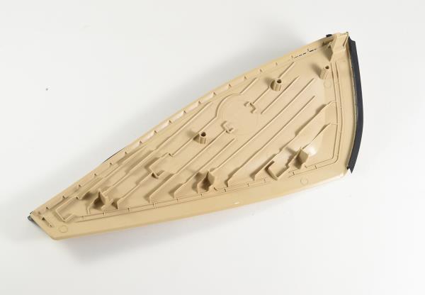 寶馬X7的End Cap部件采用了先進的雙色模具技術,旨在將硬膠與軟膠完美結合,滿足其獨特的功能與美觀需求。這種模具結構極為復雜,包含4個大斜頂,整體重量高達5.5噸,需要搭配1100噸注塑機并通過外接信號驅動。這不僅對模具設計提出了高要求,也對制造工藝和設備能力形成了巨大考驗。