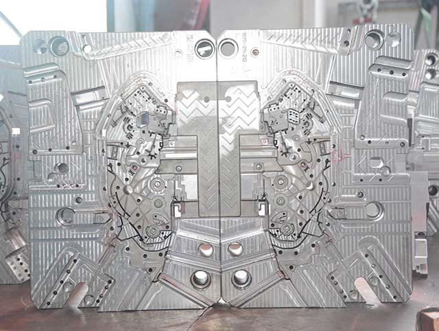 BMW end cap 1000T大型雙色模具,前模頂出需要開模同時沿分型面頂出,合模需要分型面推前模頂出系統回位,經過我們工程團隊前期跟客人提出的有效建議對產品的優化,結果模具試模一次成功。